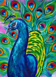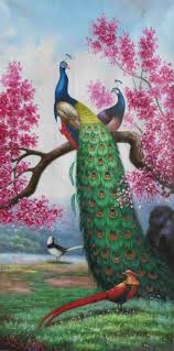 This painting is done on a large canvas. Then you will paint a branch and the peacock s deep blue body. Peacock is a beautiful bird belonging to the phasianidae family.